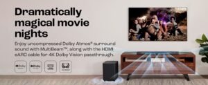 Product Features Dolby Atmos and MultiBeam surround sound; PureVoice dialogue enhancement technology; 590W output power; Built-in Wi-Fi with AirPlay, Alexa Multi-Room Music and Chromecast built-in; HDMI eARC with 4K Dolby Vision passthrough;