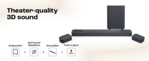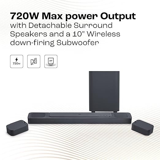 Product Features True Dolby Atmos surround sound with detachable surround speakers; PureVoice dialogue enhancement technology; 720W output power; Built-in Wi-Fi with AirPlay, Alexa Multi-Room; Music and Chromecast built-in; HDMI eARC with 4K Dolby Vision pass-through; Easy sound calibration;