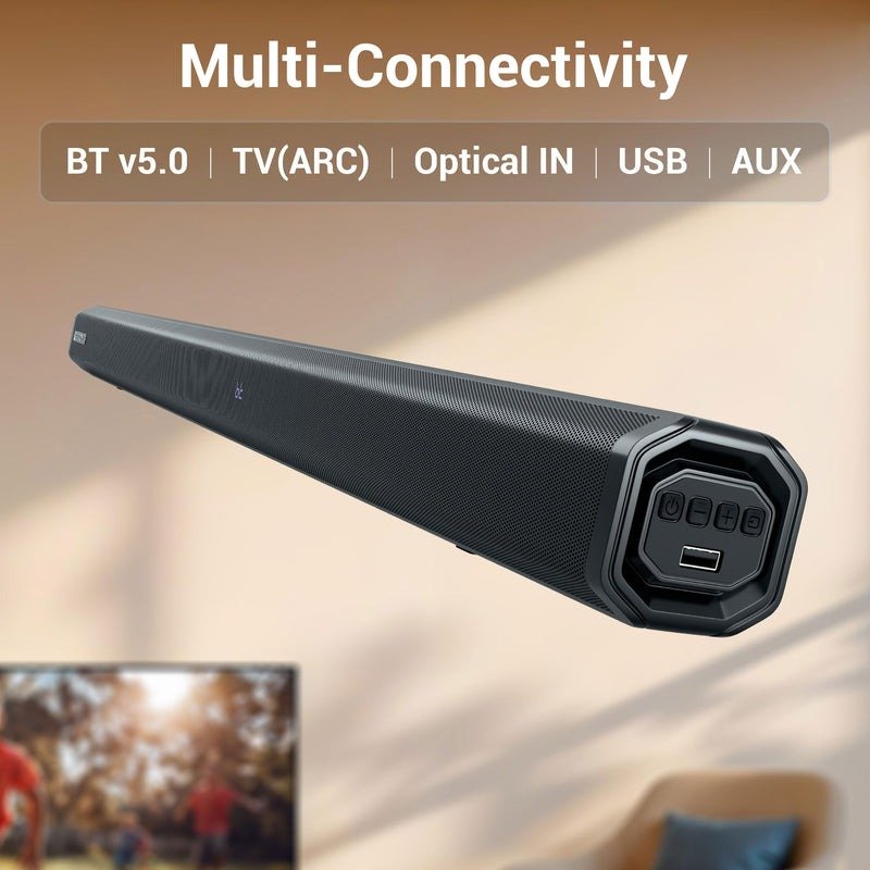 - BT v5.0 | HDMI (ARC) | Optical IN | USB | AUX